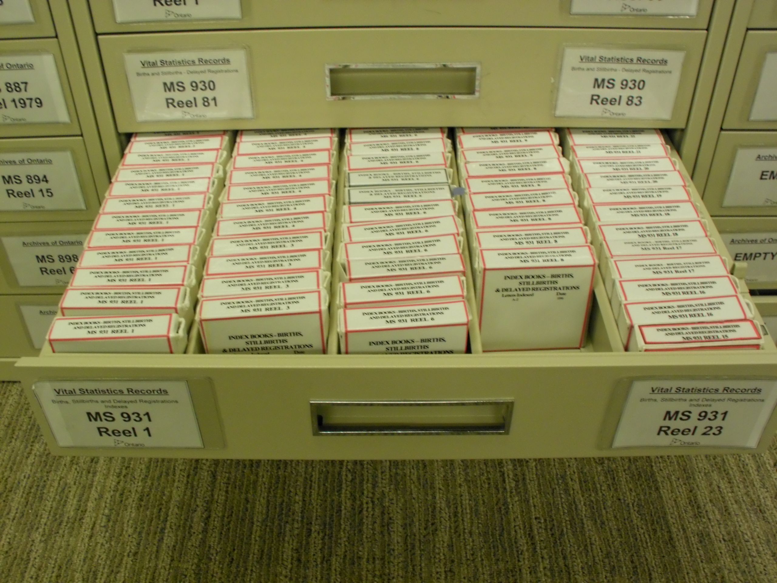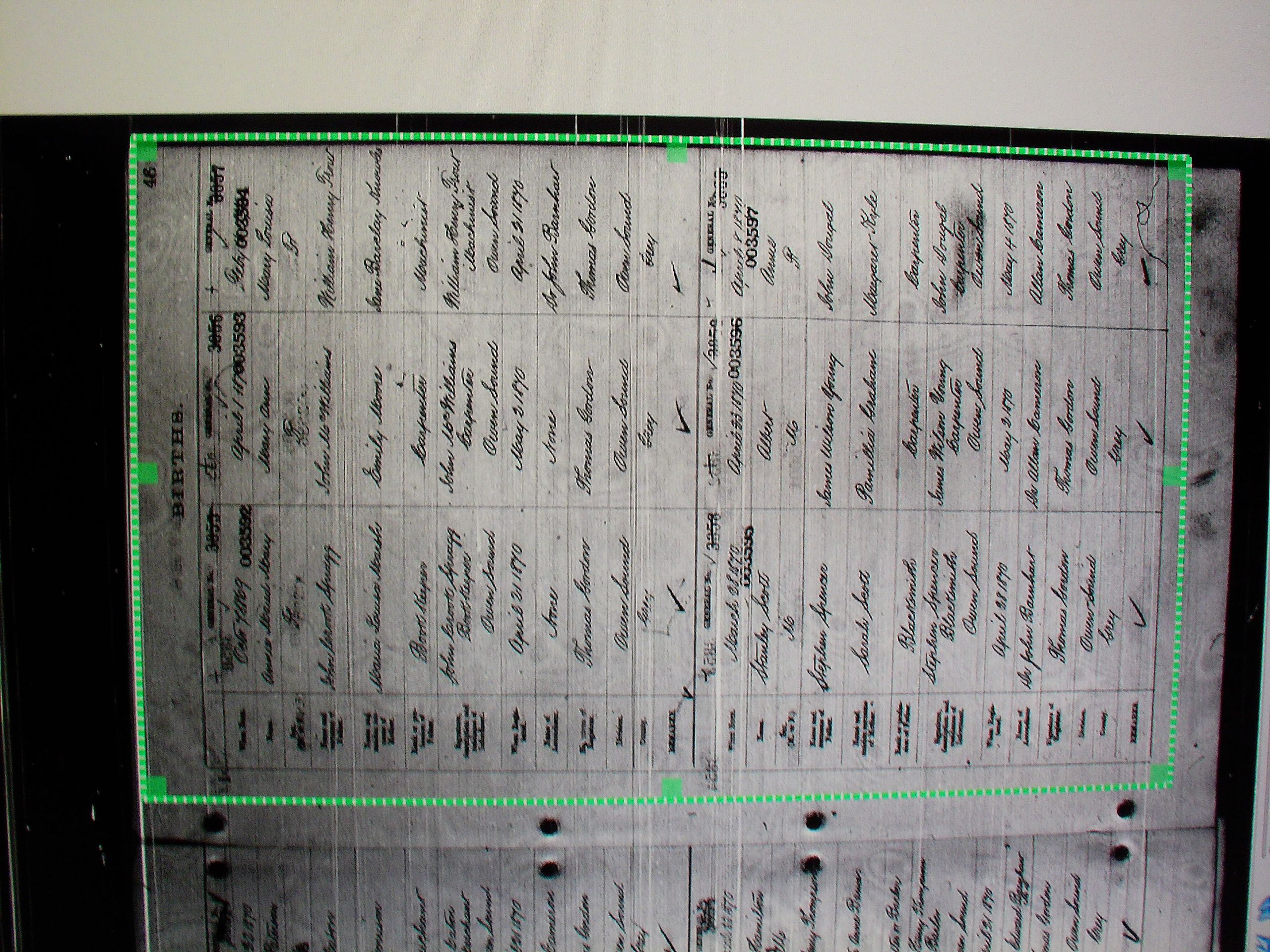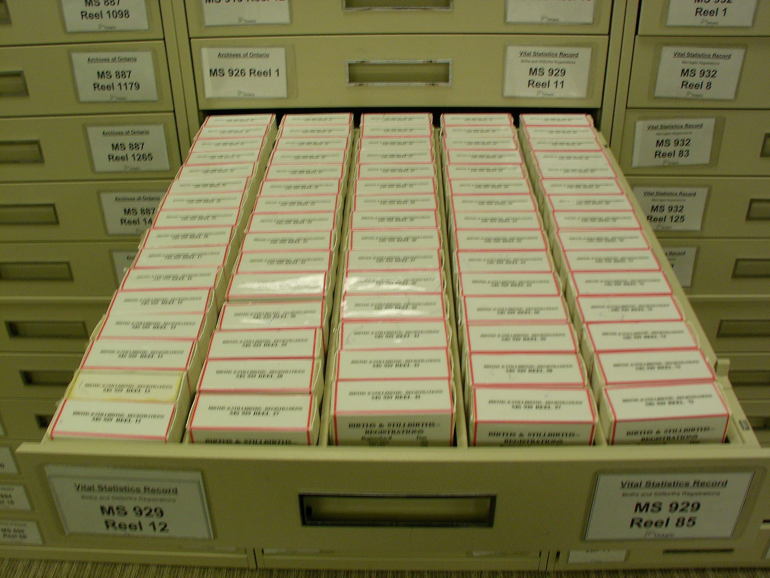 13: Ontario's archived birth certificates are indexed in rolls of microfiche, such as this one.