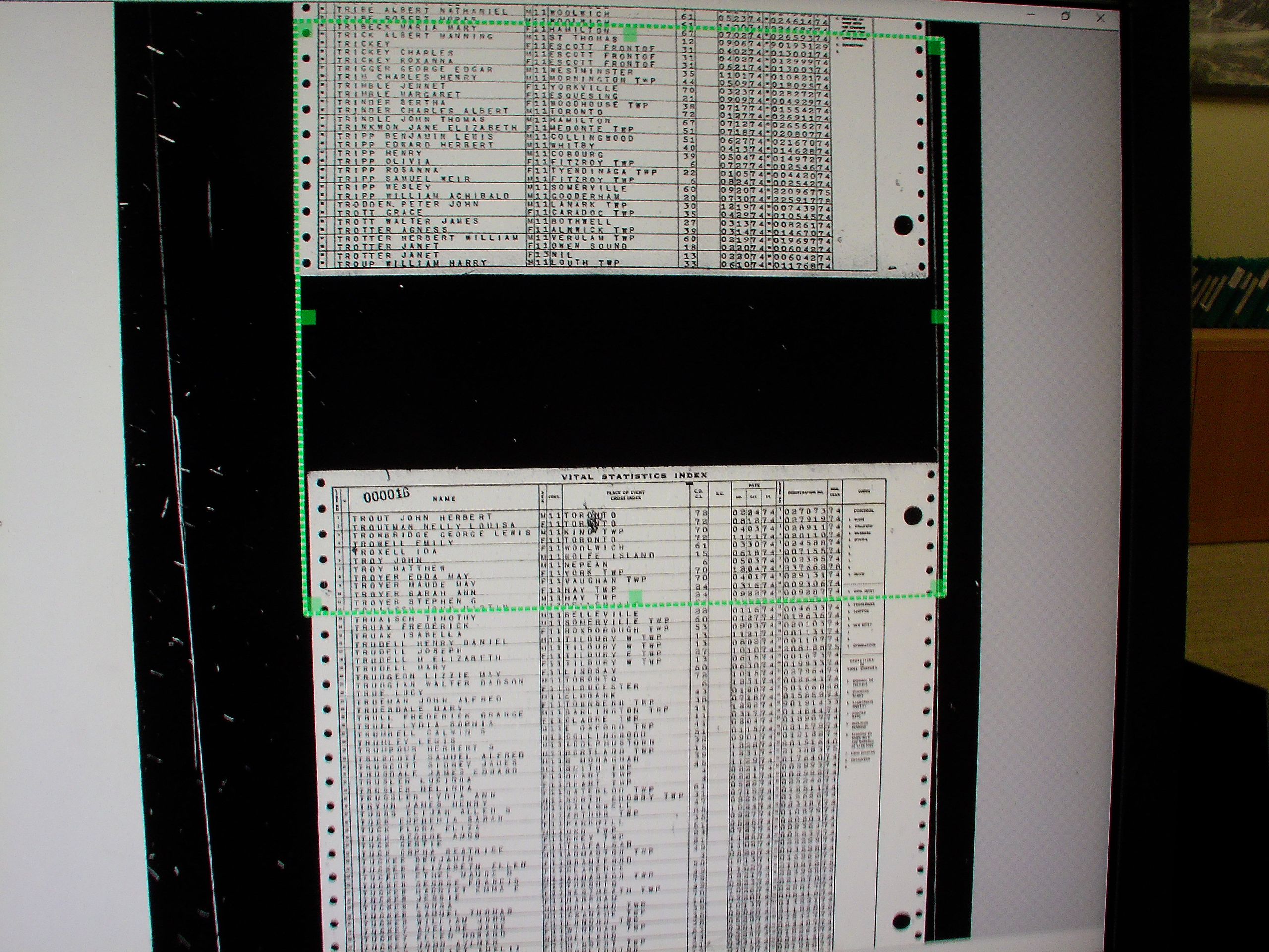 13: Ontario's archived birth certificates are indexed in rolls of microfiche, such as this one.